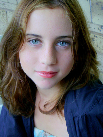 Amazing eyes. Nice (sweet) facial expression! "Foreground-background contrast" (the blur) is very good. Nice girl