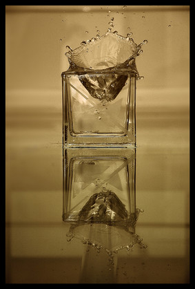 Orada cismin düşmesiyle ortaya çıkan şey daha görsel!...Sıvının saçılması, Kadehin içindeki türbülans falan....Aydınlatmada bir fark varsa da ben göremedim...Her iki fotografta da gayet başarılı bir şekilde aydınlık ve karanlık kısımların diffüzyonu verilmiş....İlk fotografa göre arkaplan ayarlaması ve hatta imzanın yerleştirilmesi bile burada daha özenli...