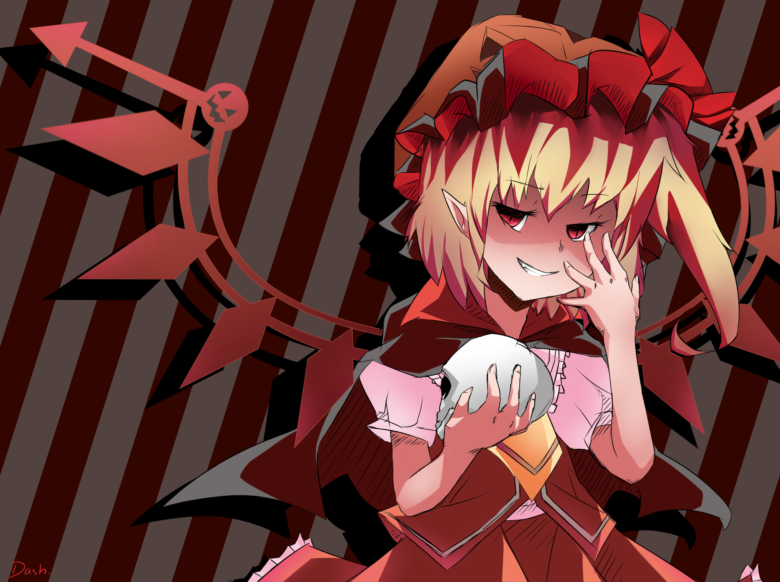 For Halloween! XD I was inspired by a random design that I found somewhere, so I don't own the design or Flandre. (duh)(edit: fixed the background and added some more shadow)