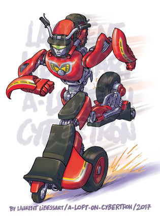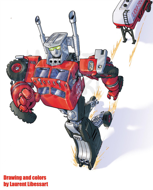 Here is Streamroller. Most of you could not know this character. It's an "obscur" transformer that appeared in the G2 comics. Here is the image I use as a base. The funny thing is that he never appeared in his robotform. So this design is totally original, unseen... and mine ^^.This drawing is a commission forthe rusting carcass 's portfolios. I'm impatient to see that printed