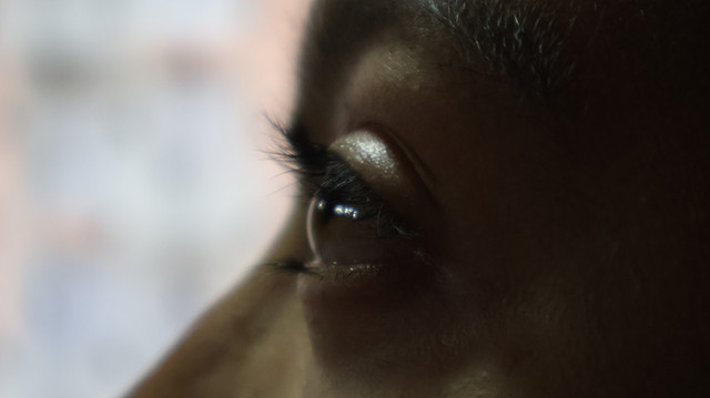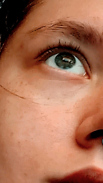 There's too much head, which takes the focus away from where it needs to be. I'd recrop, leaving the eye in the same horizontal position, but including nothing higher than a tiny area of skin above the eyebrow.