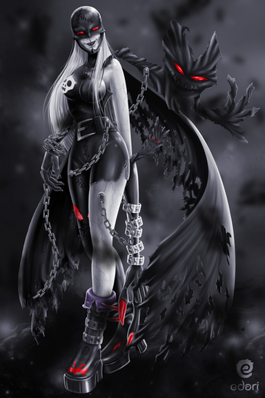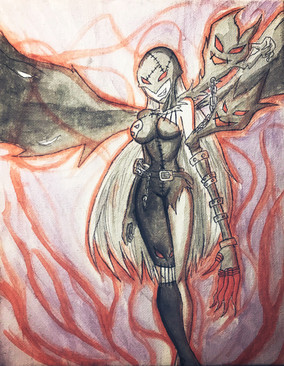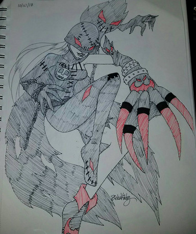 i drew this loooooooooooong time ago, from the 'ladydevimon' digimon card. i use to love it. well this was impossible to draw and it took me forever to color in today. my pinky is in pain!bech!
