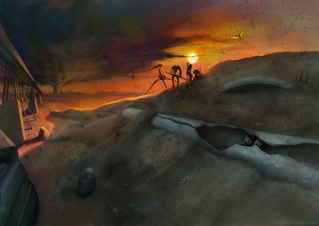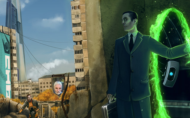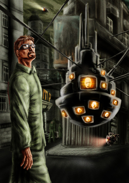 "Oh God..." Kleiner said.Gordon followed Kleiner's gaze and saw the citadel at the center of City 17. Something about it was different. The odd, irregular guy-wires that ran down from the spire into the body of the city had begun to twitch and tremble, the uppermost wires grasping at the air like antennae, sensitive to every motion. Gordon knew there was only one thing likely to have gained their interest.