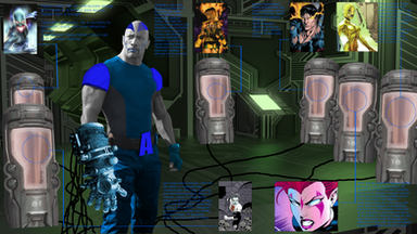 God this was a pain in the ass! Someone here on Deviantart turned me on to these free programs, GIMP2 and Inkscape, which ive been playing around with lately. I used inkscape to make some SCP wallpapers (which i did not deem worth posting, since i literally just pasted two pics together side by side) and today i decided to experiment with GIMP, which i guess is photoshop for poor ppl. I wasn't exactly top of my class in photoshop anyway, so this was a bitch to learn. This took me about most of the day, and i still didn't get the scans (lines, circles, and text) to glow like i wanted. But fuck it, im calling it a day. lolz!Space: Gravity Man: His Gravity Hold has been augmented to open wormholes to input coordinates. I also considered Galaxy Man, but Gravity Man seemed more specific.