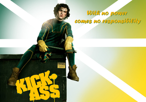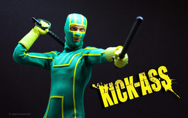 No comments? What is wrong with people? Kick-Ass has got to be one of my favourite, funniest comic-book-to-cinema-screen adaptations ever! What you have here is perfectly fitting the theme from the movie: the idea that these guys take it their job very seriously, looking over the city as its protectors... But at the same time as trying to be serious, you have over-the-top violence, swearing, innuendo, humour, etc. The first official Kick-Ass movie posters had that same feeling: you're looking at a ridiculously dressed individual, out to save the world. Because there are so many super hero flicks these days, it was easy to assume Kick-Ass would follow that familiar path. In actual fact, the exact opposite is true because you have a gang of delusion misfits coming together to dish out their own sense of vigilantism. The resulting irony of that situation made the film utterly hilarious. You have made that same leap with this image, a tongue-in-cheek depiction evocative of those original movie posters, put together to give that "epic" feel. I could shower more praise, but really, I think the best compliment I can give you right now is this: I've found the perfect new image for my desktop wallpaper!
