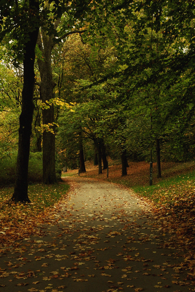 when I first saw this picture, I thought it was a small creek running through the park!Β I didn't notice it was a path until I saw the paving stones in the bottom right corner!