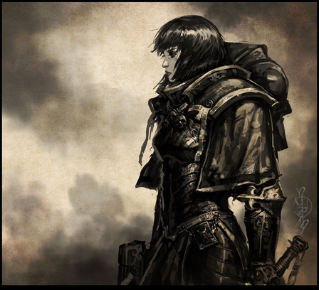 oooooooooOOOOOoh. I like a lot. Especially what you did with the mid section armor. The traditional version always looks like it's either made of cloth material down there or detrimentally inflexible. The pose is also rather clever. I used to have the worst time drawing my sister swinging her eviscerator overhead because of those silly pauldrons.