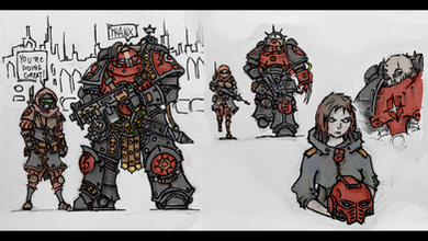 Just derping aroundOne of the Wh40K teams I'm currently playing in. Featuring Moira the desperado (scum on Ascension level), Marcus the Ultramarine, Caim the Blood Angel (both Deathwatch Brothers) and Artemis the Vindicare.