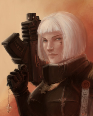 well, Im an avid 40k gamer, both tabletop and rpg, and I've always found great inspiration on your drawings of flavia, just doing her sorority things. I was hoping to get more of that.. inspiring art...