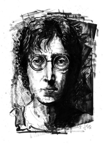 I like how in your drawings you make the background "busy" but you make sure that the main picture is clear. It's very good! And just to be clear, this is John Lennon right?