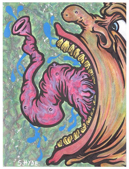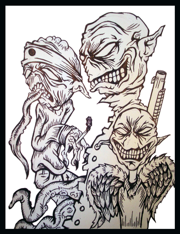 yeah, I drew this because someone told me that he was ill and had been puking through his eyes nose and mouth!