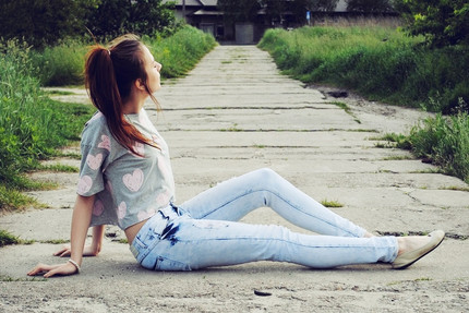 Nice. She appears to be somewhere else, like she is not outside or in that spot at all, but on a bed or sofa inside.