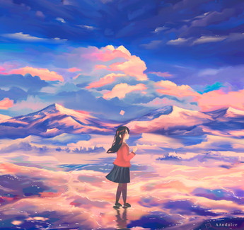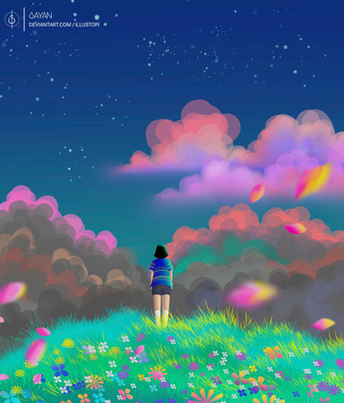 #afternoon #clouds #colorful #colors #digitalpainting #flowers #girl #landscape #mood #sky #sunset #scenerylandscape