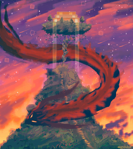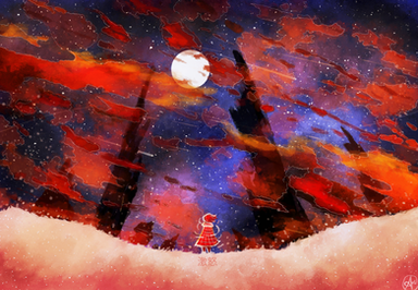 #artwork #clouds #desert #emotions #forward #glow #illustration #intensity #landscape #motivation #night #person #planet #red #ruins #scenery #sky #skyscape #spear #stars #andulce #fire #digitalart #digitalpainting #prehistoric