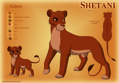 I know, I've read that ^^ I liked that idea too. (but what I meant was that, for example, Uru has Mufasa with Ahadi, and Taka/Scar was son of Ahadi and other lioness. it could be possible, too, and we could use just a combination of Mufasa's colors for Uru, while Taka's colors would go for Ahadi/ the other lioness. or something like that. I hope you know what I mean xD sorry for my twisted explanation.)