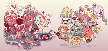 Lightwave ..the 2d elements are added in photoshop.. and the composite is in aftereffects.