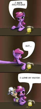 Going back to Kenziboru Oe's novel, Death by Water: What can I say that story is about? Generational conflict. How about video games, Undertale? I buy into hbomber's analysis that it's "perverted sentimentality". Hell, I'd look at Fallout Equestria as being more of a political tale than anything, less a story about a mare bringing selfless justice to the wasteland but organizing it and removing the enemies of the organization of ponies to make their own future before retiring away into the clouds and leaving terrestrial affairs be, which is why I've drawn Pip as Le Incorruptible Hellmare of Le Revolution!