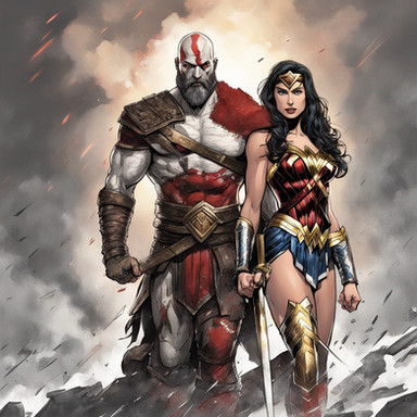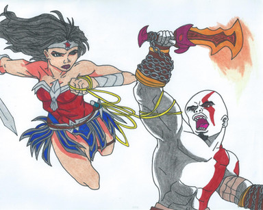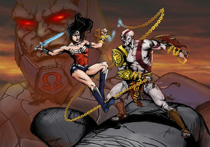 Kratos spent his entire life in the alternate Norse mythology but one day he,mimir and atreus discovered a portal which was actually a time portal created by Salem who planned to use Kratos for her own ends unfortunately it did not go so well once they entered the portal it had the effects of aging Kratos to what he used to look like during the Greek pantheon it also had the effect of restoring all his past weapons,powers and magic to life even turning the blades of chaos back into the blades of exile and powering up the blade of olympus once again it also had a strange effect on mimir making him very very smart knowing basically everything unfortunately it had a bad side effect once they entered the modern world back when the kingdom of vale was destroyed by a grimm pyrrha who was basically the new beast the portal made atreus age into a very very old man he only had a few words left until he was turned to dust this obviously pissed off Kratos he took all the past equipment plus the ones he had now and went into hidding rather then being a berserker like he was before he decided to investigate on who was really behind him being back in the modern world no matter where he went he would see stories of his tales slaughtering the gods of olympus but surprisingly there was no record of him in Norse mythology this got Kratos more curious about this new world fast forward to After Salems defeat, Kratos was told about Zeus and the rest of the olympian gods returning to life he has changed about regretting to kill Zeus but he obviously gave 0 fucks about Ares so he can kill him as many times as he wants Kratos set sail to themyscara with mimir around his belt obviously once he got there he made his way out of the beach and traveled around themyscara without a care in the world he was ambushed by amazons plus hippolyta he did not want to kill them so he basically knocked them all out then he met his greatest challenge the justice league who were at the island at the time with wonder woman they attacked Kratos with more Amazon's who he managed to knock out Kratos played smart during his battle with the justice league he out ran and beat Flash in a battle of speed thanks to the boots of Hermes,he threw batman easily swatting him like a fly,he used supermans strength to his advantage and use against Martian Manhunter and aquaman by throwing superman at them,he held his own against cyborg and easily defeated green arrow due to his skill with the bow of apollo his last opponent was wonder woman their skills matched each other one being a spartan and the other a Amazon during the fight wonder woman quickly recognized the golden fleece Kratos was wearing as well as the boots of hermes,claws of hades,nemean cestus,medusas head and many others she took Kratos to mount olympus to speak with Zeus and the other gods.Zeus Confessed to diana that Kratos is his son and by extent her brother the only reason he never told her was because he believed Kratos was dead due to the end of the world however Kratos explained that he survived after he stabbed himself with the blade of olympus and athena has been haunting him after he left Greece he was surprised to see all the gods he killed especially ares he was even surprised to see Athena who had changed Zeus apologized for everything he had done to Kratos and Kratos slowly forgave him but he obviously didn't forgive ares now Kratos fights with his sister with the justice league as a honorary member and he trains the young members like blue beetle and firestorm of course he's not too harsh on them since their not his children.