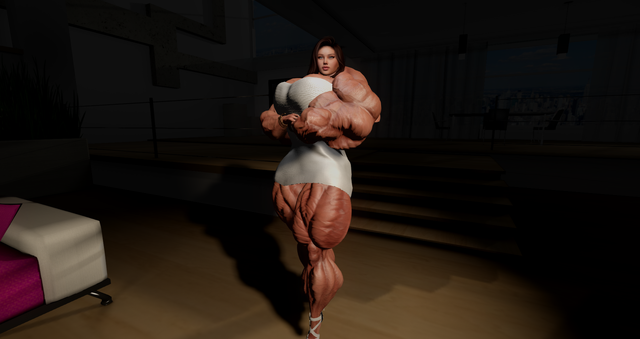(This was posted to my Patreon a few weeks ago, along with 7 alternate camera angles.)"So, what makes you think you would be a good fit for the 'Bouncer' position?" Even before the interviewer finished asking the question, our girl's muscles started to expand. It wasn't until about a minute later when she finally stopped her growth, and seemingly only because her body had started to rip holes in her dress. "I have complete control, and perfect knowledge, of my entire body. I am confident that I can fit into whatever shape the job calls for."