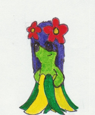 But since I failed at making her colors darker with the colored pencils and the fact my scanner made them even lighter, so I attempted to make it look darker by using the Burn/Dodge on GIMP. So that's why it looks a little odd.