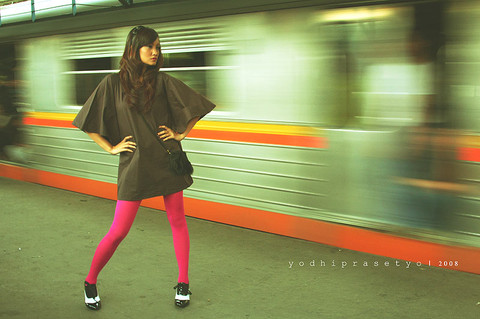 Great shot, love the outfit!. Must of have been shot in Germany, train in background looks like it could be DB rolling stock.