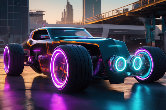 The "Cyberpunk Car" painting is a mesmerizing artwork that embodies the essence of a futuristic, dystopian world. With its vibrant colors, intricate details, and sleek design, the painting transports viewers into a cyberpunk universe filled with advanced technology and urban chaos. The car depicted in the painting is a stunning fusion of retro and futuristic elements, featuring neon lights, sharp angles, and a distinct cyberpunk aesthetic. The artist skillfully captures the essence of this subgenre, evoking a sense of excitement, mystery, and a touch of danger. The artwork invites viewers to immerse themselves in a world where technology and humanity coexist in a complex and visually stunning manner. Through this painting, the artist explores themes of technological advancement, societal implications, and the human experience in a cyberpunk future.Related content