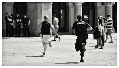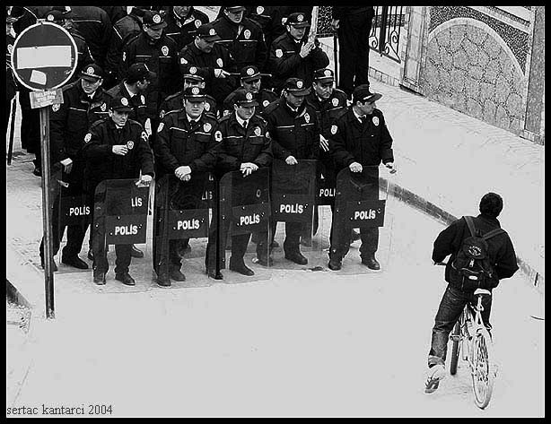 Wow, I wonder what is going on... This photo has enormous value as an image of our time, I think.