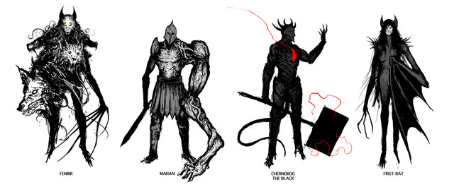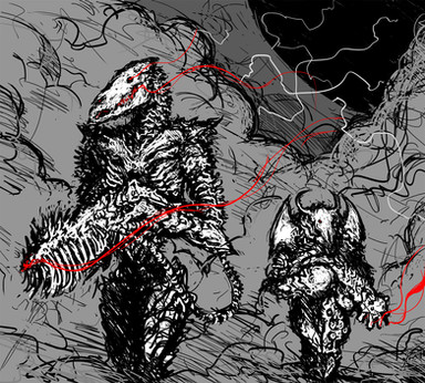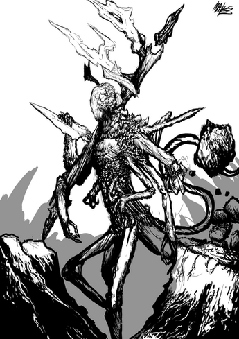 Thing from an old sketch book.I love the main guy with the spidery legs. he's badass.