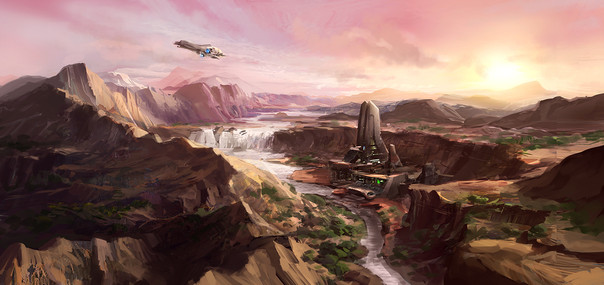 wow awesome idea and colors! but I am confused why the jet trails and the car is leading the viewer to a canyon only. I think if you added something like a giant station or epic alien base or idk ... something to look at would make this piece even more epic! Cheers~