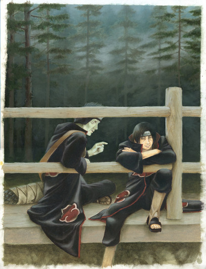 and the way you went about it is marvelous. I really really love the way Itachi is portrayed here especially! the play with lights in the background is also great and the shades of green really accent the piece well.