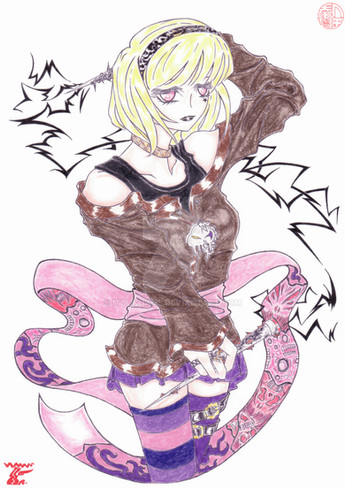 Actually this isn't in my style, the original pic is from the Tenjho Tenge manga (vol. 8 if I remeber). I just decided to use it for a marker coloring tutorial and also as a test to see what I could do with my Prismacolor markers