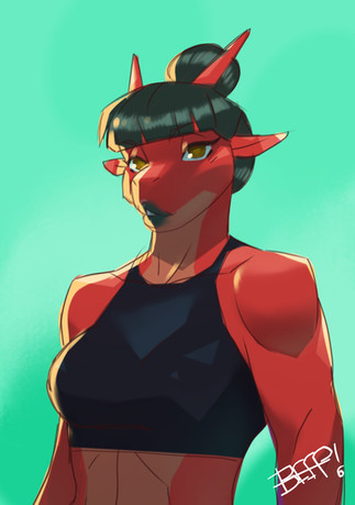 #demongirl #digitalart #humanoid #musclegirl #redskin #muscularfemale #hornedcharacter