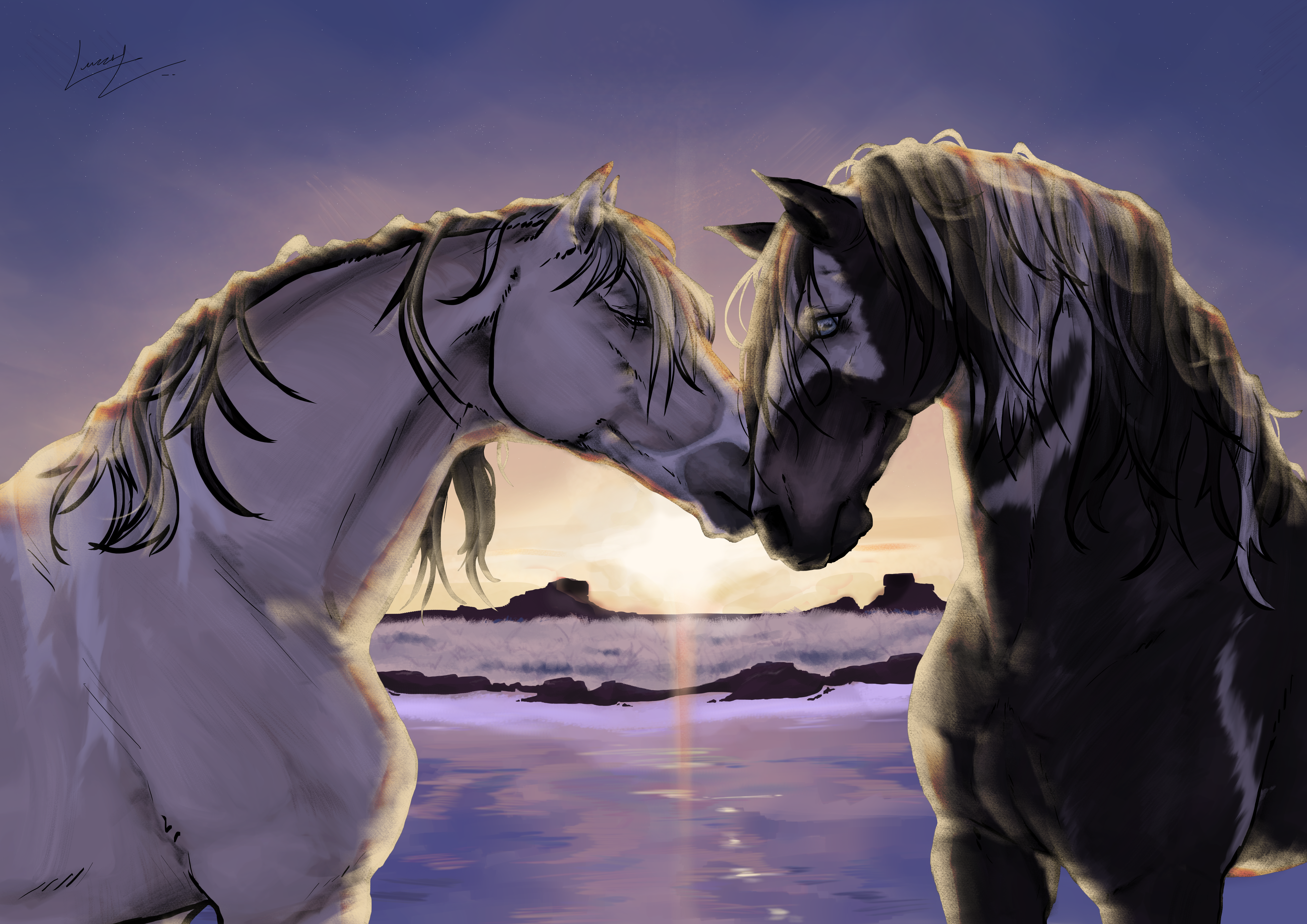 Awww... how sweet! They do make a striking pair! The lighting and sky are just gorgeous!