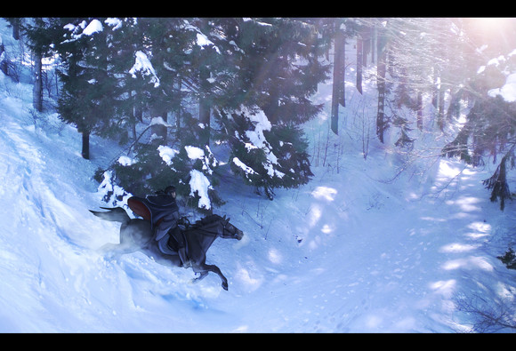 Lyo hurried to Sex, when he entered the Box there was an old but fancy horse-blanket on her. "Johann.." he wispered and took it off. He never saddled a horse that fast, and the next moment he ran into the freezing cold with Sex. There was no snowfall, but still colder than any winter evening he knew.