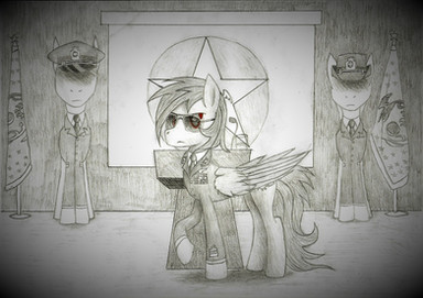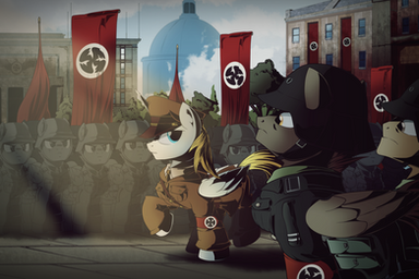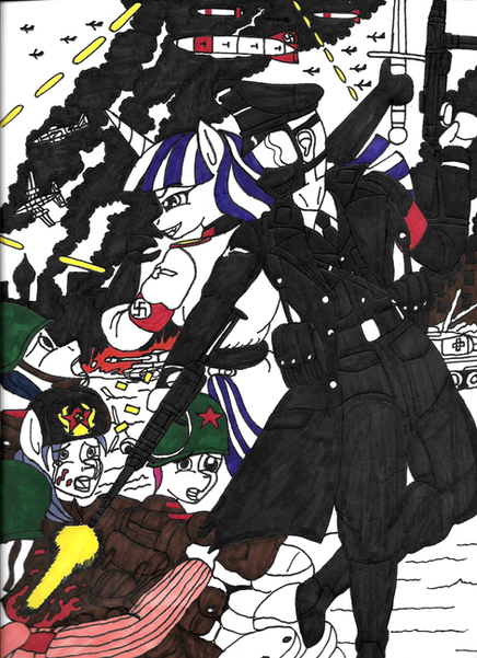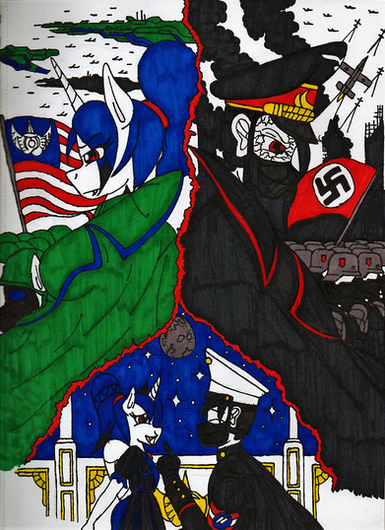 "We lost total control when they destroyed the Bismark Station that disrupted our weapons. And the amount of land that our brothers and sisters have died for. Now this city is about to fall." Nathan faces John. "The Fuhrer demands that the resistance is to be destroyed before the Equestrians decide to aid their comrades and restart the war AND before this city is burned to the ground by them or us."