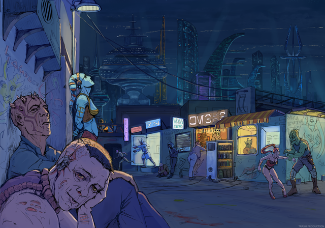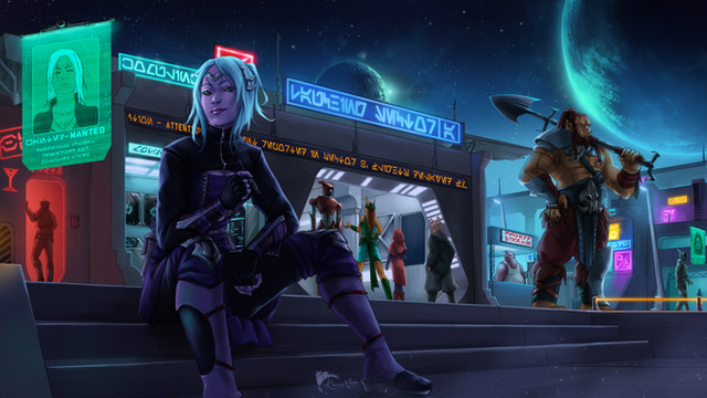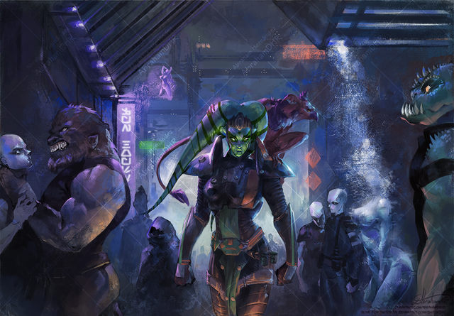 Regular illustration commission done for of their badass bounty hunter tracking the next prey, who's hiding somewhere in the underworld of Nar Shaddaa.Related content