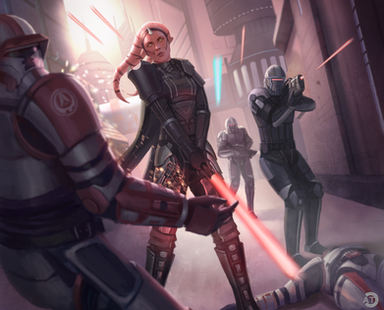 Illustration commission done for of their successful twi'lek sith Leive invading an enemy shipThis is a continuation of THIS