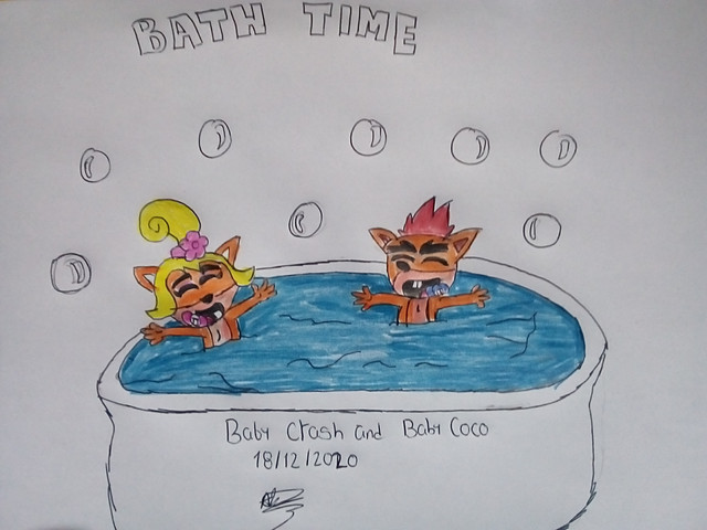 The skin is from Crash Team Racing Nitro Fueled, in her Victory pose it is about Coco eating a wumpa fruit at that moment you can see that she is drowning, but everything is a joke and then she does her typical Victory dance This is one of my favorite skins and I wanted to represent it with this drawing.Crash Bandicoot © Activision