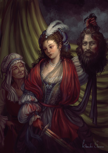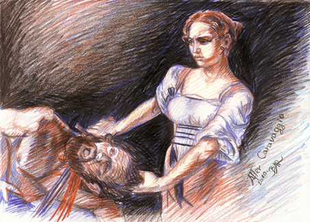 A colored pencil drawing of Judith holding Holofernes' headRelated content