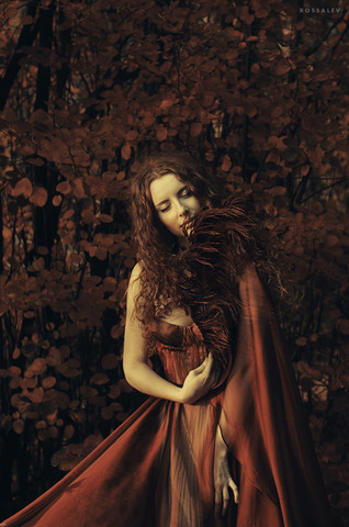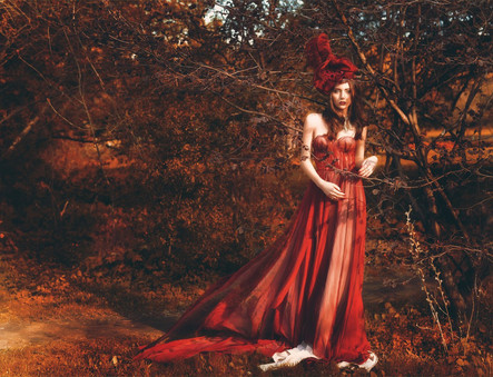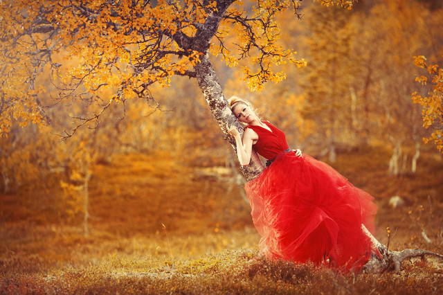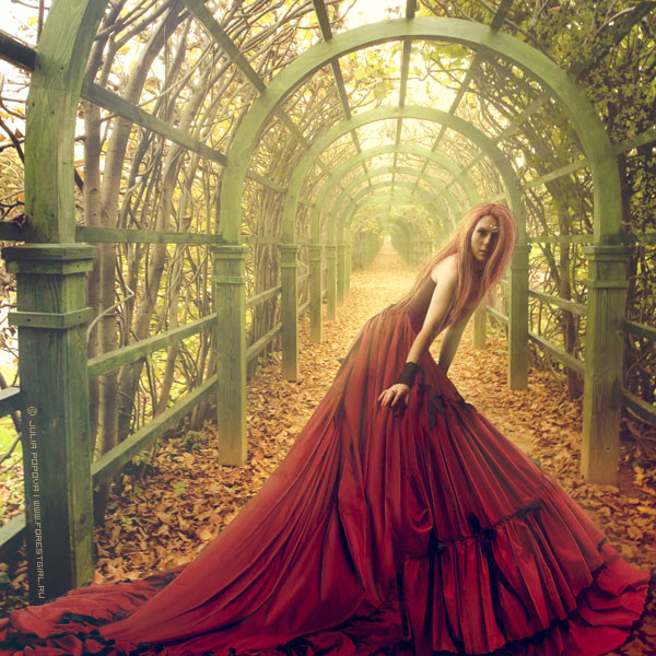 Beautiful! Β I love how there are oranges and red in the background that almost seem like reflected light from her dress!
