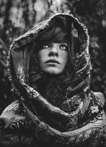 Wow. Love the way the hair and scarf frame the face, almost giving it a dream like quality.