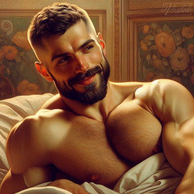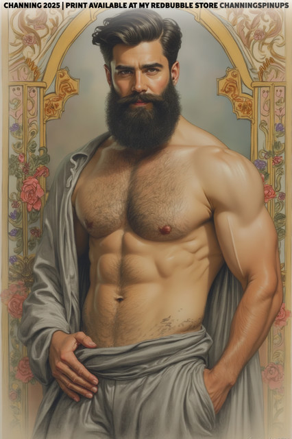 #malecharacter #digitalart #ai #bear #beard #beauty #body #bodyhair #daddy #hairychest #handsome #homoerotic #hunk #male #man #masculine #muscles #muscular #vintage #artnouveaustyle