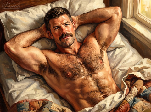 #digitalart #portrait #ai #bear #beauty #body #bodyhair #daddy #hairychest #handsome #homoerotic #hunk #male #malecharacter #man #masculine #muscles #muscular #mustache #vintage