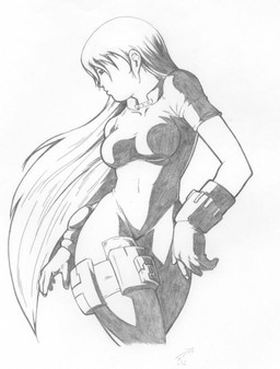 Inked drawing I made in 2000, of a girl in a capsule, DBZ style__________________________________________