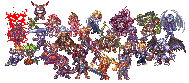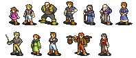When made these, i aimed for a GBA-like style using Seiken Densetsu colors, didnt came out bad. They have no special design or anything, just made typical costumes: Neutral, Fighter, Healer, Mage, Brawler and Dark KnightI found interesing this experiment, maybe i do more stuff with these sometime