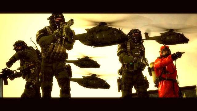 + This is a speedpainting? I geuss you ahd a good idea by having a single focus to work on and making it dark enough that even area's of that didn't need to be over detailed. The colouring on the nearest helicopter is a little rough, but not enough to detract from the effect. This is well thought out and well put together, I love it.