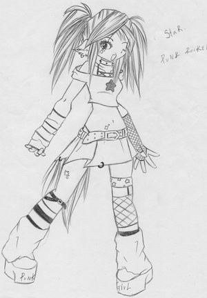 Appearance: Looking at the female's body her legs were covered to what looked like long socks but it covered her black shoes like some king of leggings. She wore an extremely short skirt, exposing the strings of her panties. Above that was her bare belly and her shirt that allowed her breasts to show slightly, but allowing her nipples to be covered. The shirt had three cuts in the middle but only showed her chest, the sleeves stopped slightly past her shoulders and the neck was extended, looking like a turtle neck. Her belly was a light tan, the rest was red with dark red spots. She seems to be a fan of red.