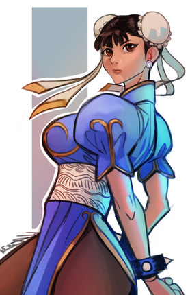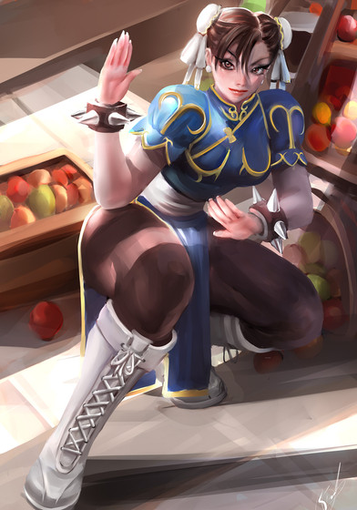 She’s getting very popular on my requests lately! I was given free direction on this one and I chose Akiman's pinup of Chun sitting over luggage. I’ve always love that piece! And actually Akiman is the very main designer behind Chun’s creation.I tried to put in some of Gil Elvgren’s colour palette, hope i got some of his feeling on the piece!