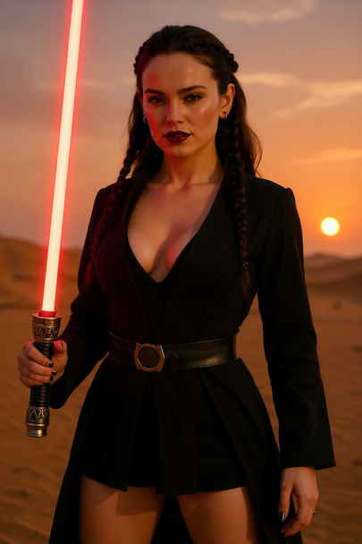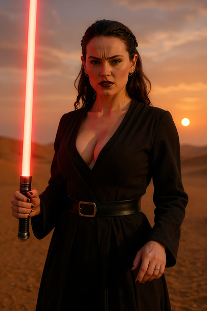 #cosplay #starwars #bimbo #breastexpansion #busty #cleavage #lightsaber #rey #sith #daisyridley #reyskywalker
