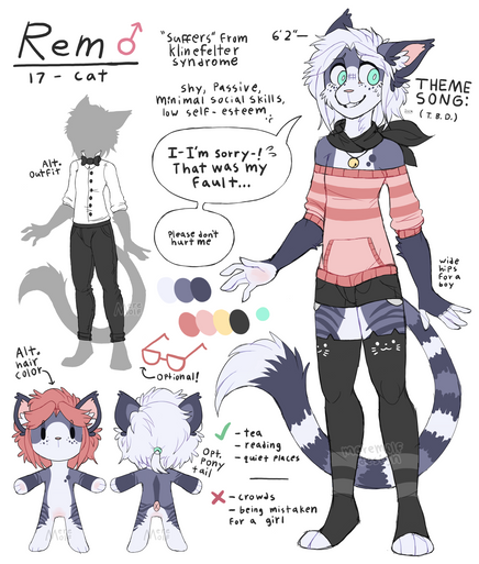 Finally he's here. The last of the group! Akumah is here!! The trio is whole!! Funny story about this lad. I actually had a really cool dream one night several years ago, about this small cat kid and saw a whole story play out about what happened on his homeworld. When I woke up from that dream I ran to write it down and have been working with it ever since. Its so cool when characters just show up in your dream and go "oh hey I exist now." I have his whole backstory written down on paper and in text but its... big secrets so I cannot share any of it because its a plot thing for later orz